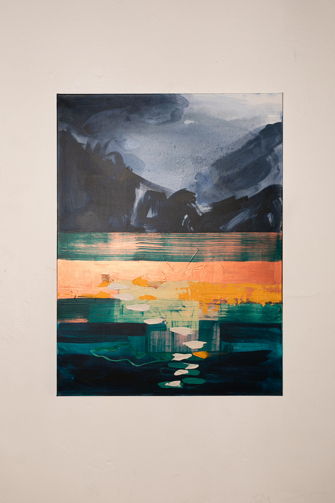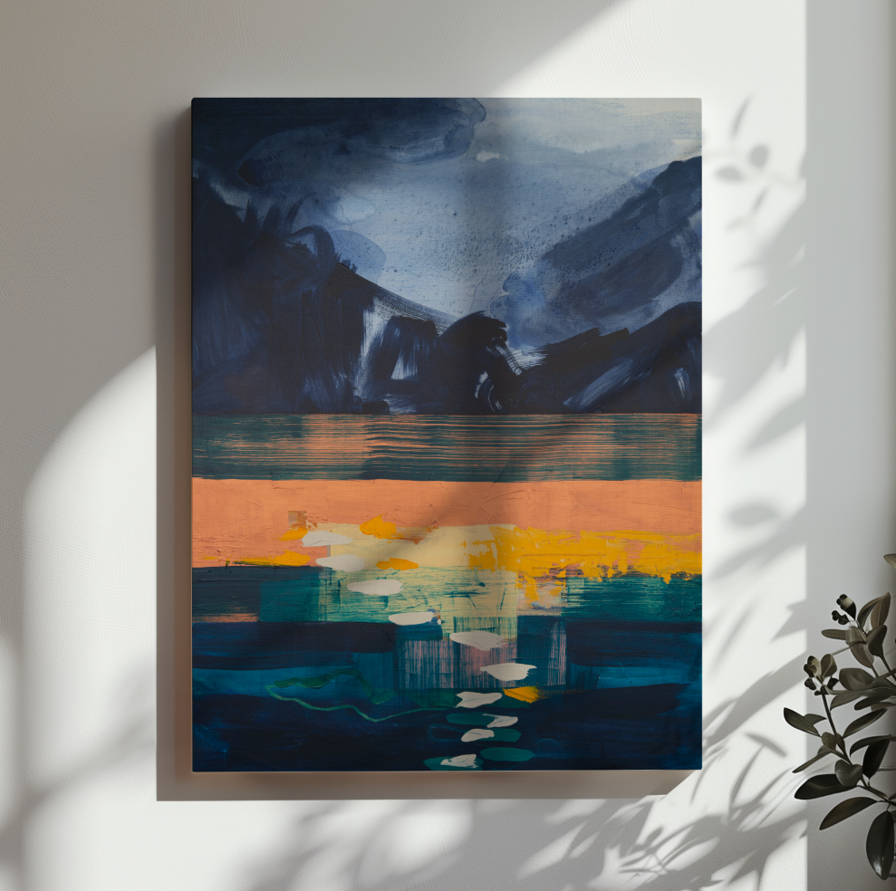 Ride Out the Storm is an abstract landscape grounded by a steady horizon—an emblem of endurance through turbulence. This piece reflects the part of transformation where the skies darken, momentum slows, and the work becomes staying with it.